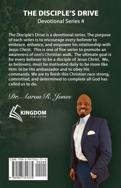 The Disciple's Drive is a devotional series. The purpose of each series is to encourage every believer to embrace, enhance and empower his relationship with Jesus Christ. This is one of five series to promote an awareness of one's Christian walk. The ultimate goal is for every believer to be a disciple of Jesus Christ. We, as believers, must be motivated daily to be more like Him; to be His ambassador and to obey His commands. We are to finish this Christian race strong, committed, and determined to complete all God has called us to do.