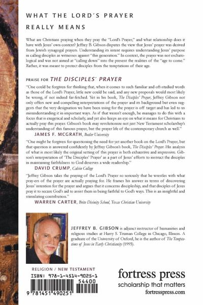 What are Christians praying when they pray the Lords Prayer, and what relationship does it have with Jesus own context? Jeffrey B. Gibson disputes the view that Jesus prayer was derived from Jewish synagogal prayers. Understanding its intent requires understanding Jesus purpose in calling disciples as witnesses against this generation. In context, the prayer was not eschatological and was not aimed at calling down into the present the realities of the age to come. Rather, it was meant to protect disciples from the temptations of their age.
