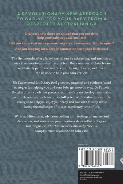 A revolutionary new approach to caring for your baby from a respected Australian GP. Did you know there are things that you can do to help your baby cry and fuss less in the first 16 weeks? Did you know that many parents' nights are unnecessarily disrupted? Are you longing for a deeper connection with your newborn? The first months after a baby's arrival can be exhausting, and attempts at quick fixes are often part of the problem. But a number of obstacles are accidentally put in the way of a healthy night's sleep, and much can be done to help your baby cry less. The Discontented Little Baby Book gives you practical and evidence-based strategies for helping you and your baby get more in sync. Dr. Pamela Douglas offers a path that protects your baby's brain development so that he or she can reach his or her full potential. She also offers simple strategies to help you enjoy your baby and live with vitality when faced with the challenges of this extraordinary time. With real-life stories, advice on dealing with feelings of anxiety and depression, and answers to your questions about reflux and allergies, The Discontented Little Baby Book is a compassionate revolution in baby care.