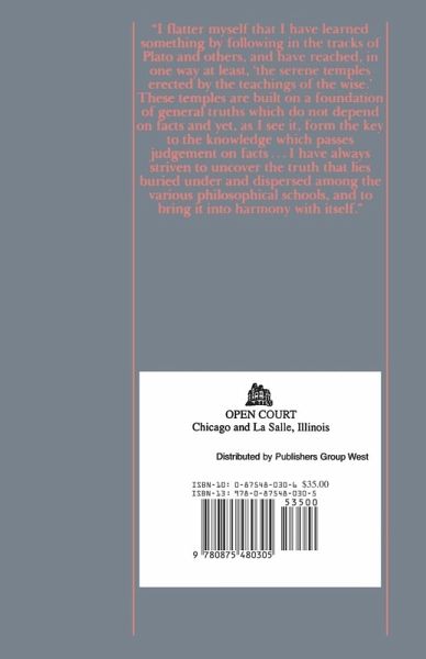"I flatter myself that I have learned something by following in the tracks of Plato and others, and have reached, in one way at least, the serene temples erected by the teachings of the wise. These temples are built on a foundation of general truths which do not depend on facts and yet, as I see it, form the key to the knowledge which passes judgment on facts...I have always striven to uncover the truth that lies buried under and dispersed among the various philosophical schools, and to bring it into harmony with itself."
