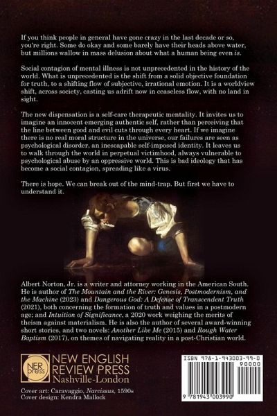If you think people in general have gone crazy in the last decade or so, you're right. Some do ok and some barely have their heads above water, but millions wallow in mass delusion about what a human being even is. Social contagion of mental illness is not unprecedented in the history of the world. What is unprecedented is the shift from a solid objective foundation for truth, to a shifting flow of subjective, irrational emotion. It is a worldview shift, across society, casting us adrift now in ceaseless flow, with no land in sight. The therapeutic worldview entails a shift from morality to psychology - from sin to syndrome. The cost is a sense of helplessness, and therefore victimhood, brought on by feeling we're in the grip of psychological forces we can't control. The moral paradigm, on the other hand, preserves one's agency and therefore one's dignity. If you fail, you can do something about it. It's not you, it's the conduct. Go and sin no more. But if your anxieties and idiosyncrasies and lack of confidence are put down to psychological disorder, it is you, and you're marked thereafter as vulnerable.You're left to walk through the world in a timorous state of presumptive victimhood. That subjective feeling of helplessness incapacitates, and it is contagious, spreading through society as an ideological virus. There is hope. We can break out of this mind-trap. But first we have to understand it.