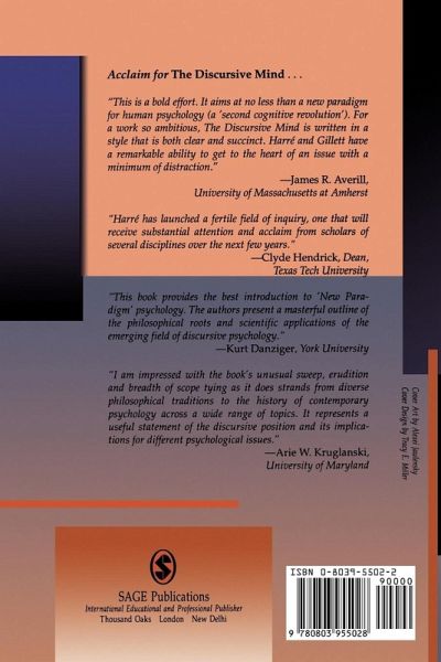 This lucidly argued volume covers the key philosophical revolutions that are shaping contemporary psychology. Harr[ac]e and Gillett herald a new paradigm in psychology, dissolving the Cartesian distinction between mind and body in favour of the discursive turn in psychological theory. The authors explore the discursive origins of the self, the problem of agency and social understanding of personality. In the process, they elevate the emotions to a significant place in our understanding of mind, action and being. The theoretical breadth of the book is matched by its treatment of a wide range of subjects, including: consciousness; the brain; perception; thought; personality; and the emotions.