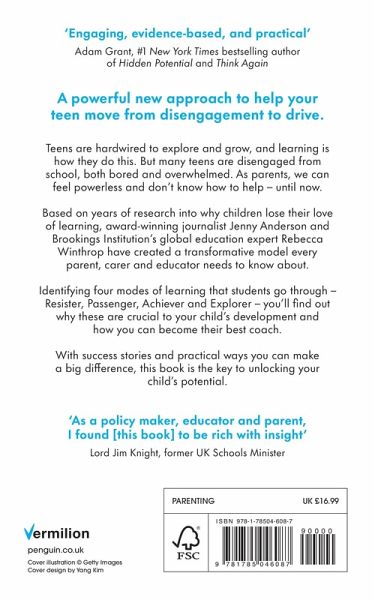 'Our education systems are short-changing far too many teenagers. This book is brimming with insights on how to change that. It's an engaging, evidence-based, and practical read about how to develop a generation of lifelong learners.' - Adam Grant, #1 New York Times bestselling author of Hidden Potential and Think Again, and host of the podcast Re:Thinking A powerful new approach to help your teen move from disengagement to drive. Adolescents are hardwired to explore and grow, and learning is mainly how they do this. But a shocking majority of teens are disengaged from school, simultaneously bored and overwhelmed. As parents, we can feel powerless and don't know how to help - until now. Based on five years of research into why children lose their love of learning, award-winning journalist Jenny Anderson and the Brookings Institution's global education expert Rebecca Winthrop have created a transformative model that every parent, carer and educator needs to know about. Identifying four modes of learning that every student goes through - resister, passenger, achiever and explorer - you'll find out why understanding what these are is crucial to your child's development and how you can coach them to become a curious, resilient and motivated learner. With stories from children who have used the tools in this book to become life-long learners, and with clear strategies on how to become your child's best cheerleader, this book is essential reading for everyone who wants to help young people thrive.