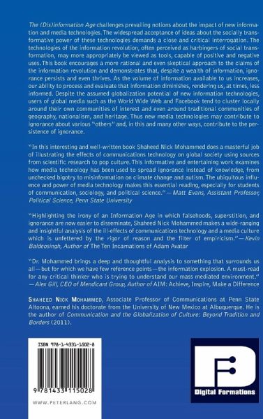 «In this interesting and well-written book Shaheed Nick Mohammed does a masterful job of illustrating the effects of communications technology on global society using sources from scientific research to pop culture. This informative and entertaining work examines how media technology has been used to spread ignorance instead of knowledge, from unchecked bigotry to misinformation on climate change and autism. The ubiquitous influence and power of media technology makes this essential reading, especially for students of communication, sociology, and political science.» (Matt Evans, Assistant Professor, Political Science, Penn State University)