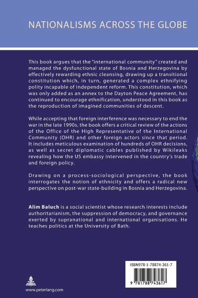 This book argues that the «international community» created and managed the dysfunctional state of Bosnia and Herzegovina by effectively rewarding ethnic cleansing, drawing up a transitional constitution which, in turn, generated a complex ethnifying polity incapable of independent reform. This constitution, which was only added as an annex to the Dayton Peace Agreement, has continued to encourage ethnification, understood in this book as the reproduction of imagined communities of descent.