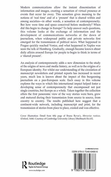 Modern communications allow the instant dissemination of information and images, creating a sensation of virtual presence at events that occur far away. This sensation gives meaning to the notions of 'real time' and of a 'present' that is shared within and among societies"in other words, a sensation of contemporaneity. But how were time and space conceived before modernity? When did this begin to change in Europe? To help answer such questions, this volume looks at the exchange of information and the development of communications networks at the dawn of journalism, when widespread public and private networks first emerged for the transmission of political news. What happened in Prague quickly reached Venice, and what happened in Naples was soon the talk of Hamburg. Gradually, enough became known about daily affairs around Europe for people to begin to think in terms of a 'shared present'. An analysis of contemporaneity adds a new dimension to the study of the origins of news and media history, as well as to the origins of a European identity. For whilst our understanding of the circulation of manuscript newsletters and printed reports has increased in recent years, much less is known about the impact of this burgeoning journalism on a pan-European scale. Each essay in this volume explores the ways in which this international impact helped foster a developing sense of contemporaneity that encompassed not just single countries, but Europe as a whole. Taken together the collection offers the first panoramic view of the way stories were born, grew and matured during their transmission from source to source, from country to country. The results published here suggest that a continent-wide network, including manuscript and print, for the transmission of stories from place to place, existed and was effective.