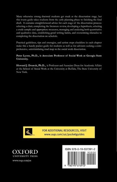 Practical guidelines, tips and strategies, and action steps checklists in each chapter make this a handy pocket guide for students as well as advisors seeking a comprehensive, unintimidating road map to the social work dissertation.