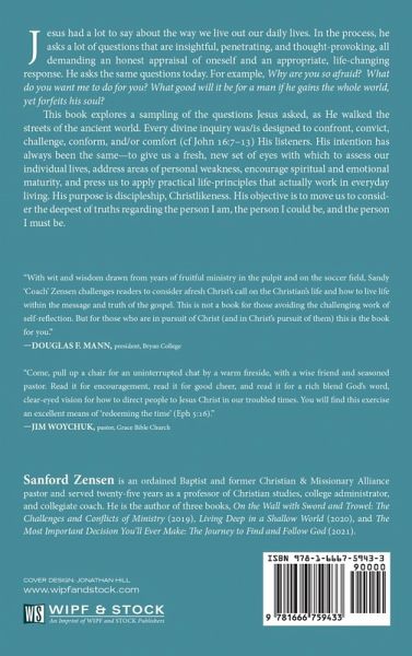 Jesus had a lot to say about the way we live out our daily lives. In the process, he asks a lot of questions that are insightful, penetrating, and thought-provoking, all demanding an honest appraisal of oneself and an appropriate, life-changing response. He asks the same questions today. For example, Why are you so afraid? What do you want me to do for you? What good will it be for a man if he gains the whole world, yet forfeits his soul? This book explores a sampling of the questions Jesus asked, as he walked the streets of the ancient world. Every divine inquiry was/is designed to confront, convict, challenge, conform, and/or comfort (cf John 16:7-13) His listeners. His intention has always been the same - to give us a fresh, new set of eyes with which to assess our individual lives, address areas of personal weakness, encourage spiritual and emotional maturity, and press us to apply practical life-principles that actually work in everyday living. His purpose is discipleship, Christlikeness. His objective is to move us to consider the deepest of truths regarding the person I am, the person I could be, and the person I must be.