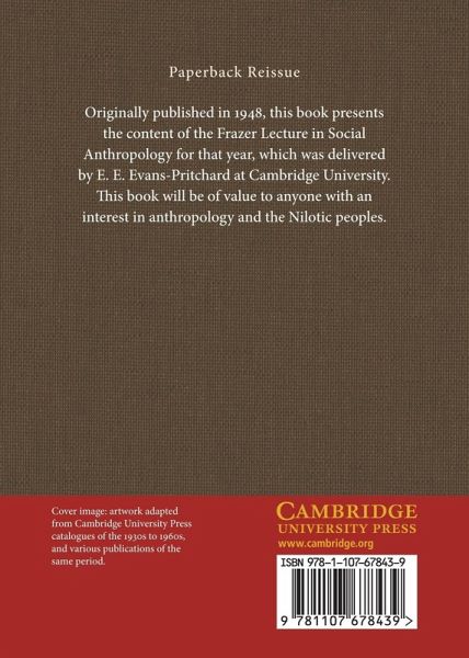 Originally published in 1948, this book presents the content of the Frazer Lecture in Social Anthropology for that year, which was delivered by E. E. Evans-Pritchard at Cambridge University. This book will be of value to anyone with an interest in anthropology and the Nilotic peoples.