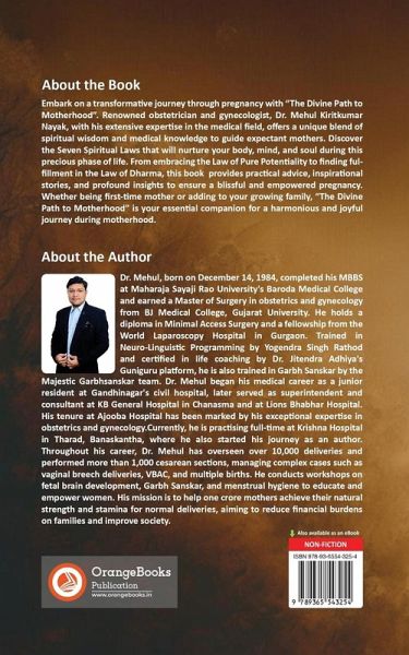 Embark on a transformative journey through pregnancy with "The Divine Path to Motherhood". Renowned obstetrician and gynecologist, Dr. Mehul Kiritkumar Nayak, with his extensive expertise in the medical field, offers a unique blend of spiritual wisdom and medical knowledge to guide expectant mothers. Discover the Seven Spiritual Laws that will nurture your body, mind, and soul during this precious phase of life. From embracing the Law of Pure Potentiality to finding fulfillment in the Law of Dharma, this book provides practical advice, inspirational stories, and profound insights to ensure a blissful and empowered pregnancy. Whether being first-time mother or adding to your growing family, "The Divine Path to Motherhood" is your essential companion for a harmonious and joyful journey during motherhood.