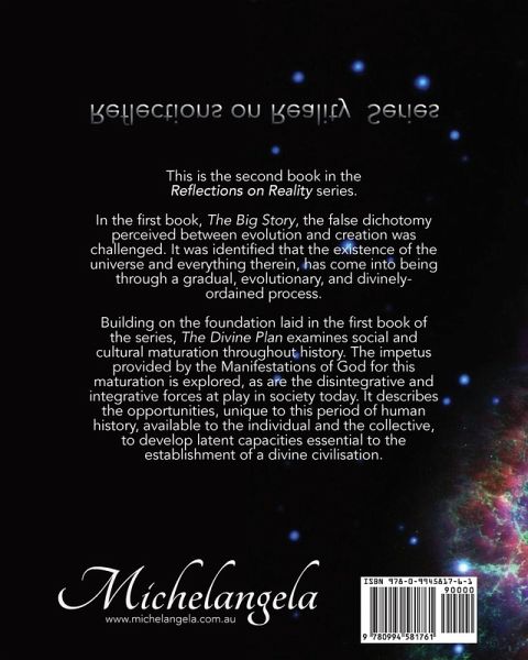 This is the second book in the Reflections on Reality series. In the first book, The Big Story: Challenging the dichotomy of evolution and creation, the false dichotomy perceived between evolution and creation was challenged. It was identified that the existence of the universe and everything therein, has come into being through a gradual, evolutionary, and divinely-ordained process. Building on the foundation laid in the first book of the series, The Divine Plan: Integrative & disintegrative forces in society, examines social and cultural maturation throughout history. The impetus provided by the Manifestations of God for this maturation is explored, as are the symptomatic disintegrative and integrative forces at play within society today. It describes the opportunities, unique to this period of human history, available to the individual and the collective, to develop latent capacities essential to the establishment of a divine civilization. This book is designed for adults and youth. The language is generally suitable for those 14 years and older.