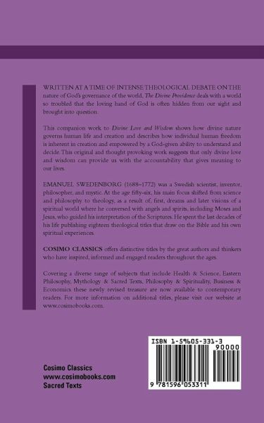 Written at a time of intense theological debate on the nature of God's governance of the world, The Divine Providence deals with a world so troubled that the loving hand of God is often hidden from our sight and brought into question. This companion work to Divine Love and Wisdom shows how divine nature governs human life and creation and describes how individual human freedom is inherent in creation and empowered by a God-given ability to understand and decide. This original and thought provoking work suggests that only divine love and wisdom can provide us with the accountability that gives meaning to our lives. EMANUEL SWEDENBORG (1688-1772) was a Swedish scientist, inventor, philosopher, and mystic. At the age fifty-six, his main focus shifted from science and philosophy to theology, as a result of, first, dreams and later visions of a spiritual world where he conversed with angels and spirits, including Moses and Jesus, who guided his interpretation of the Scriptures. He spent the last decades of his life publishing eighteen theological titles that draw on the Bible and his own spiritual experiences.