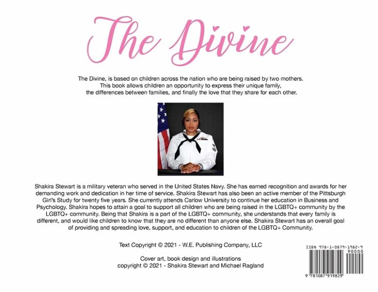 The Divine, is based on children across the nation who are being raised by two mothers. This book allows children an opportunity to express their unique family, the differences between families, and finally the love that they share for each other. This book introduces children to being open to accept other families who are not like their own.