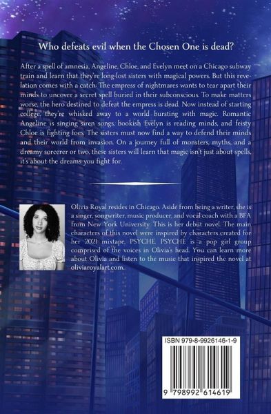 Who defeats evil when the Chosen One is dead? After a spell of amnesia, Angeline, Chloe, and Evelyn meet on a Chicago subway train and learn that they're long-lost sisters with magical powers. But this revelation comes with a catch: The empress of nightmares wants to tear apart their minds to uncover a secret spell buried in their subconscious. To make matters worse, the hero destined to defeat the empress is dead. Now instead of starting college, they're whisked away to a world bursting with magic. Romantic Angeline is singing siren songs, bookish Evelyn is reading minds, and feisty Chloe is fighting foes. The sisters must now find a way to defend their minds and their world from invasion. On a journey full of monsters, myths, and a dreamy sorcerer or two, these sisters will learn that magic isn't just about spells, it's about the dreams you fight for.