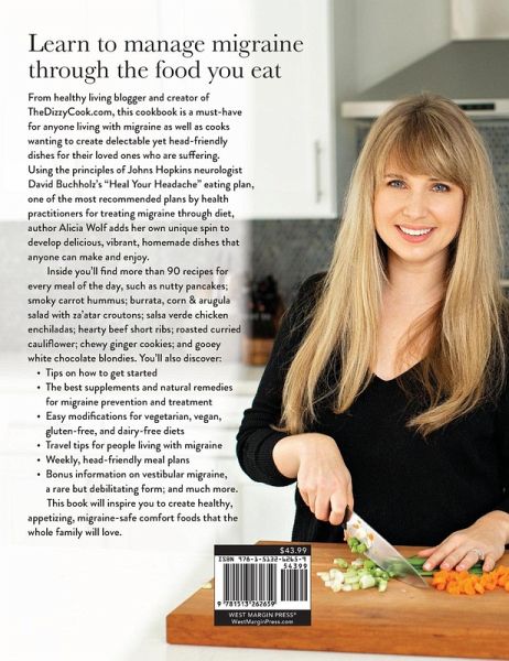 This cookbook features more than 90 delicious recipes and dozens of helpful tips to help combat migraine symptoms through diet and lifestyle. From healthy living blogger and creator of TheDizzyCook, Alicia Wolf, comes the must-have cookbook for anyone managing migraines, as well as anyone who just loves to create delectable yet diet-friendly dishes. Author Alicia Wolf developed her recipes using the principles of Johns Hopkins neurologist David Buchholz's "Heal Your Headache" diet, one of the most recommended plans by health practitioners for treating migraines through diet. In this book, Alicia adds her own unique spin to the migraine diet, creating recipes that are both helpful and delicious. Inside the book you'll find:Ideas for every meal of the day Tips on how to get started The best supplements for migraine prevention and treatment Common substitutions Travel tips Meal plans And other indispensable resources Learn to make Alicia's famous blueberry muffins, smoky carrot hummus, salsa verde chicken enchiladas, roasted curry cauliflower, chewy ginger cookies, and so much more. The Dizzy Cook will inspire you to explore the infinite possibilities for healthy, appetizing, migraine-safe comfort foods.