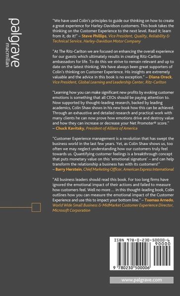 'All business leaders should read this book. For too long firms have ignored the emotional impact of their actions and failed to measure how customers feel. Well no more...in this thought leading book, Colin outlines how you can measure the emotional impact of the Customer Experience and use this to impact your bottom line.' - Txemaa Arnedo - World Wide Small Business& MidMarket Customer Experience Director. Microsoft Corporation