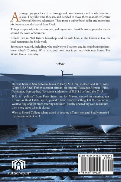 A young copy goes for a drive through unknown territory and nearly drive into a lake. They like what they see, and decided to move there as another Greater Universal Mystery adventure. They meet a quirky book seller and move into his house across the bay of Lake Dock. Things happen when it starts to rain, and mysterious, horrible aroma pervades the air around the town of Stranton. It finds Tim in Abel Baker's bookshop, and his wife Ellie, in the Gnosh n' Go, the local restaurant she finds work. Secrets are revealed, including, who really owns Stranton and its neighbouring sister-town, Gate's Crossing. What is it, and how does it get into their new home, The While House, and why?