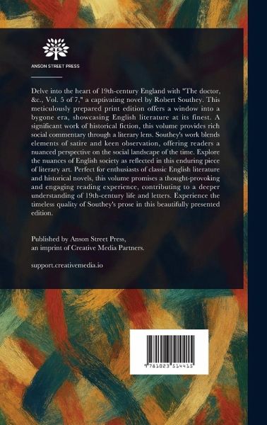 Delve into the heart of 19th-century England with "The doctor, &c., Vol. 5 of 7," a captivating novel by Robert Southey. This meticulously prepared print edition offers a window into a bygone era, showcasing English literature at its finest. A significant work of historical fiction, this volume provides rich social commentary through a literary lens. Southey's work blends elements of satire and keen observation, offering readers a nuanced perspective on the social landscape of the time. Explore the nuances of English society as reflected in this enduring piece of literary art. Perfect for enthusiasts of classic English literature and historical novels, this volume promises a thought-provoking and engaging reading experience, contributing to a deeper understanding of 19th-century life and letters. Experience the timeless quality of Southey's prose in this beautifully presented edition. This work has been selected by scholars as being culturally important, and is part of the knowledge base of civilization as we know it. This work is in the public domain in the United States of America, and possibly other nations. Within the United States, you may freely copy and distribute this work, as no entity (individual or corporate) has a copyright on the body of the work. Scholars believe, and we concur, that this work is important enough to be preserved, reproduced, and made generally available to the public. We appreciate your support of the preservation process, and thank you for being an important part of keeping this knowledge alive and relevant.