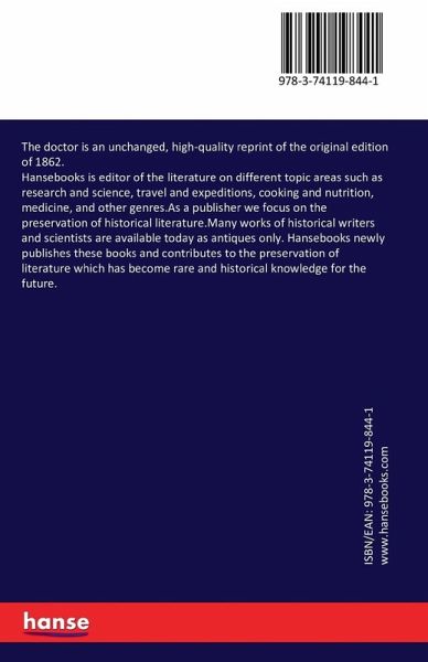 The doctor is an unchanged, high-quality reprint of the original edition of 1862. Hansebooks is editor of the literature on different topic areas such as research and science, travel and expeditions, cooking and nutrition, medicine, and other genres.As a publisher we focus on the preservation of historical literature.Many works of historical writers and scientists are available today as antiques only. Hansebooks newly publishes these books and contributes to the preservation of literature which has become rare and historical knowledge for the future.