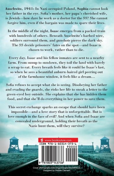 "In Nazi-occupied Poland, Sofia cannot look her father in the eye. Sofia's mother, her papa's cherished wife, is Jewish-how dare he work as a doctor for the SS? She cannot forgive him, even if the bargain was made to spare their lives. In the middle of the night, Isaac emerges from a packed train with hundreds of others. Beneath Auschwitz's barbed wire, soldiers surround them, and gunshots pierce the dark sky. The SS decide prisoners' fates on the spot-and Isaac is chosen to work, rather than to die. Every day, Isaac and his fellow inmates are sent to a nearby farm. From sunup to sundown, they toil the land with barely a scrap to eat. Every breath feels like it could be Isaac's last, so when he sees a beautiful auburn-haired girl peering out of the farmhouse window, it feels like a dream. Sofia refuses to accept what she is seeing. Disobeying her father and evading the guards, she risks her life to sneak a letter to the green-eyed boy outside. She explains that she has hidden them food, and that she'll do everything in her power to save them. This secret exchange sparks an escape that should have been impossible-and a love story that is unforgettable. But is love enough in the face of evil? And when Sofia and Isaac are concealed underground, holding their breath as the Nazis hunt them, will they survive?"--Page 4 of cover.