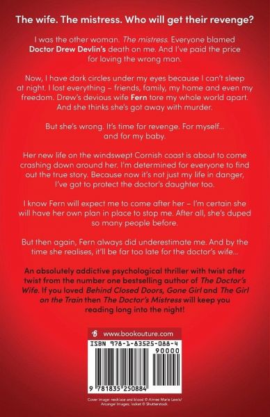 The wife. The mistress. Who will get their revenge? I was the other woman. The mistress. Everyone blamed Doctor Drew Devlin's death on me. And I've paid the price for loving the wrong man. Now, I have dark circles under my eyes because I can't sleep at night. I lost everything - friends, family, my home and even my freedom. Drew's devious wife Fern tore my whole world apart. And she thinks she's got away with murder. But she's wrong. It's time for revenge. For myself... and for my baby. Her new life on the windswept Cornish coast is about to come crashing down around her. I'm determined for everyone to find out the true story. Because now it's not just my life in danger, I've got to protect the doctor's daughter too. I know Fern will expect me to come after her - I'm certain she will have her own plan in place to stop me. After all, she's duped so many people before. But then again, Fern always did underestimate me. And by the time she realises, it'll be far too late for the doctor's wife... An absolutely addictive psychological thriller with twist after twist from the number one bestselling author of The Doctor's Wife. If you loved Behind Closed Doors, Gone Girl and The Girl on the Train then The Doctor's Mistress will keep you reading long into the night! What readers are saying about The Doctor's Wife series: 'OMG... binge read!... WOWZERS!... Curveballs that made my head just spin?!!... Deserves way more than 5 stars as it is a must-read book!' Heidi Lynn's Book Reviews, ¿¿¿¿¿ 'Wow!!!... Absolutely addictive and I read it in one sitting. I absolutely loved the cliff-hanging explosive twist at the end...! Kept me on the edge of my seat, biting my nails with my heart absolutely pounding throughout!... Practically every chapter ended with a cliff-hanger so no way could I put it down!! Absolutely hooked!!!... An absolutely heart-racing, unputdownable and addictive page-turner... I LOVED it.' Bookworm86, ¿¿¿¿¿