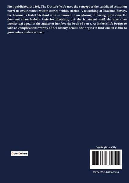 First published in 1864, The Doctor's Wife uses the concept of the serialized sensation novel to create stories within stories within stories. A reworking of Madame Bovary, the heroine is Isabel Sleaford who is married to an adoring, if boring, physician. He does not share Isabel¿s taste for literature, but she is content until she meets her intellectual equal in the author of her favorite book of verse. As Isabel's life begins to take on complications worthy of her literary heroes, she begins to find what it is like to grow into a mature woman.