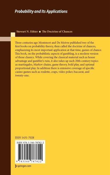 "I'm very happy to be reviewing Ethier's labor of love The Doctrine of Chances: Probabilistic Aspects of Gambling. ... Each chapter ends with many exercises and fascinating historical notes and the book ends with a few mathematical appendices. ... Ethier's book is clearly aimed at a more mathematically sophisticated audience ... and for that reason I enjoyed Ethier's much more." (Peter Rabinovitch, The Mathematical Association of America, August, 2010)