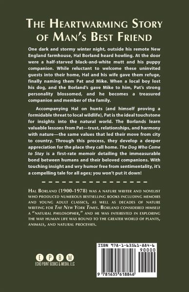 One dark and stormy winter night, outside his remote New England farmhouse, Hal Borland heard howling. At the door were a half-starved black-and-white mutt and his puppy companion. While reluctant to welcome these uninvited guests into their home, Hal and his wife gave them refuge, finally naming them Pat and Mike. When a local boy lost his dog, and the Borland's gave Mike to him, Pat's strong personality blossomed, and he becomes a treasured companion and member of the family. Accompanying Hal on hunts (and himself proving a formidable threat to local wildlife), Pat is the ideal touchstone for insights into the natural world. The Borlands learn valuable lessons from Pat-trust, relationships, and harmony with nature-the same values that led their move from city to country. Through this process, they develop a deeper appreciation for the place they call home. The Dog Who Came to Stay is a first-rate memoir detailing the immeasurable bond between humans and their beloved companions. With touching insight and wry humor free from sentimentality, it's a compelling tale for all ages; you won't put it down!