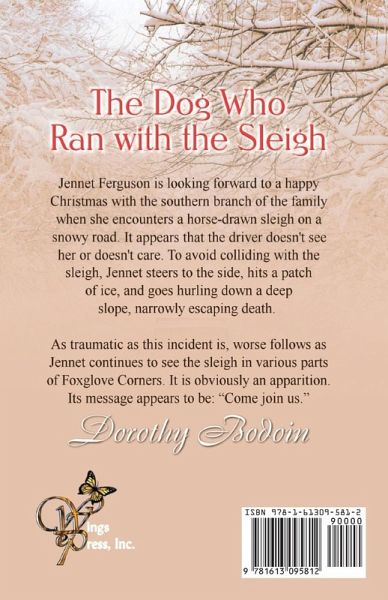 As Jennet Ferguson drives home after attending a play at her school, a fallen tree forces her to detour from her usual route. When she encounters an old-time horse-drawn sleigh on an isolated country road and realizes it is going to collide with her, she steers to the side, hits ice, and goes hurling off the road and down a deep slope.Did the driver of the sleigh intend to kill her? And why does she keep seeing the sleigh in various parts of Foxglove Corners?