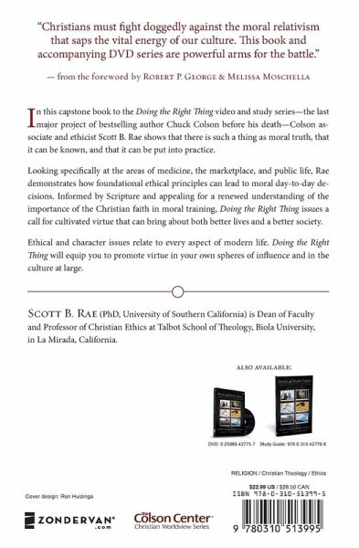 Ethicist Scott B. Rae expands on Charles Colson's Doing the Right Thing video-based study with a hard-hitting book that diagnoses society's ethical failures in plain language and points to a better way forward---one that can aid you not just in knowing what is good, but also in bringing about good in your own life and in society.