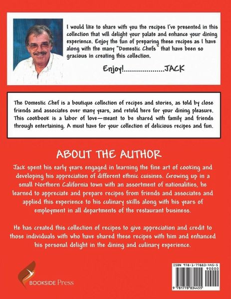The Domestic Chef is a boutique collection of recipes and stories, as told by close friends and associates over many years, and retold here for your dining pleasure. This cookbook is a labor of love-meant to be shared with family and friends through entertaining. A must-have for your collection of delicious recipes and fun.