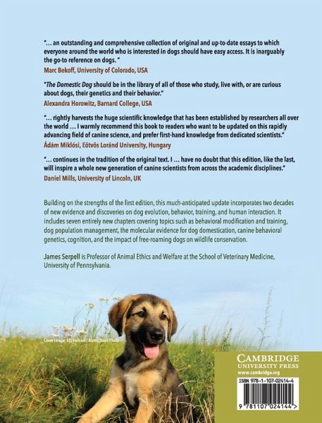 List of contributors; 1. Introduction James Serpell; Part I. Origins and Evolution: 2. Origins of the dog: the archaeological evidence Juliet Clutton-Brock; 3. Origins of the dog: genetic insights into dog domestication Bridgett Vonholdt and Carlos Driscoll; 4. Evolution of working dogs Kathryn Lord, Richard Schneider and Raymond Coppinger; Part II. Behavior, Cognition and Training: 5. Genetics of dog behavior Linda van den Berg; 6. Becoming a dog: early experience and the development of behavior James Serpell, Deborah Duffy and Andrew Jagoe; 7. Breed and gender differences in dog behavior Benjamin Hart and Lynette Hart; 8. Dog social behavior and communication John Bradshaw and Nicola Rooney; 9. Ethology, ecology, and epidemiology of canine agression Randall Lockwood; 10. Social cognition and emotions underlying dog behavior Friederike Range and ZsÓFIA VIRÁNYI; 11. The learning dog: a discussion of training methods Ilana Reisner; 12. Dogs in today's society: the role of applied animal behavior Stephen Zawistowski and Pamela Reid; Part III. Dog-Human Interactions: 13. Dogs and helping partners and companions for humans Lynette Hart and Mariko Yamamoto; 14. The welfare of dogs in human care Robert Hubrecht, Stephen Wickens and James Kirkwood; 15. From paragon to pariah: cross-cultural perspectives on attitudes to dogs James Serpell; Part IV. Life on the Margins: 16. Variation in dog society: between resource dispersion and social flux David Macdonald and Geoffrey Carr; 17. The ecology and behavior of feral dogs: a case study from central Italy Luigi Boitani, Francesco Francisci, Paolo Cuicci and Giorgio Andreoli; 18. Roaming free in the rural idyll: dogs and their connections with wildlife Joelene Hughes, David Macdonald and Luigi Boitani; 19. Dog population management Elly Hiby and Lex Hiby; 20. Epilogue: the tail of the dog James Serpell; Index.