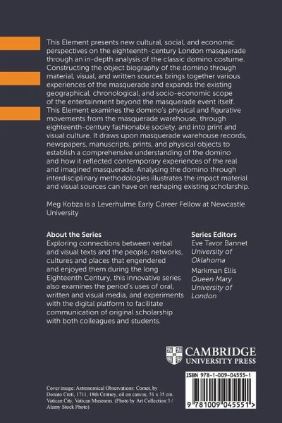 This Element presents new cultural, social, and economic perspectives on the eighteenth-century London masquerade through an in-depth analysis of the classic domino costume. It examines the domino's physical and figurative movements from the masquerade warehouse into print and visual culture.
