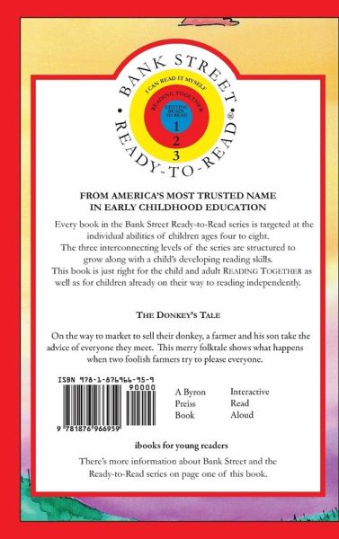 On the way to market to sell their donkey, a farmer and his son take the advice of everyone they meet. This merry folktale shows what happens when two foolish farmers try to please everyone. FROM AMERICA'S MOST TRUSTED NAME IN EARLY CHILDHOOD EDUCATION More than seventy years of educational research and innovative teaching have given the Bank Street College of Education the reputation as America's most trusted name in early childhood education. Because no two children are exactly alike in their development, we have designed the Bank Street Ready-to-Read series in three levels to accommodate the individual stages of reading readiness of children ages four through eight. • Level 1: GETTING READY TO READ- (PRE-K to GRADE 1) Books are perfect for reading aloud with children who are getting ready to read or are just beginning to read words or phrases. • Level 2: READING TOGETHER-(GRADES 1 to 3) Books are written especiallly for children who are on their way to reading independently but who may need help. • Level 3: I CAN READ IT MYSELF-(GRADES 2 to 3) Books are designed for children able to read on their own. They also can be enjoyed as read-alouds.