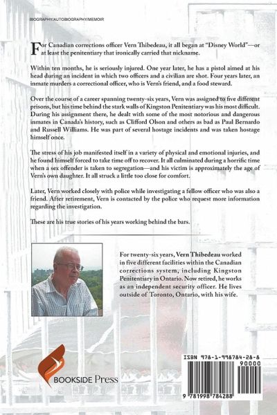 For Canadian corrections officer Vern Thibedeau, it all began at "Disney World"-or at least the penitentiary that ironically carried that nickname. Within ten months, he is seriously injured. One year later, he has a pistol aimed at his head during an incident in which two officers and a civilian are shot. Four years later, an inmate murders a correctional officer, who is Vern's friend, and a food steward. Over the course of a career spanning twenty-six years, Vern was assigned to five different prisons, but his time behind the stark walls of Kingston Penitentiary was his most difficult. During his assignment there, he dealt with some of the most notorious and dangerous inmates in Canada's history, such as Clifford Olson and others as bad as Paul Bernardo and Russell Williams. He was part of several hostage incidents and was taken hostage himself once. The stress of his job manifested itself in a variety of physical and emotional injuries, and he found himself forced to take time off to recover. It all culminated during a horrific time when a sex offender is taken to segregation-and his victim is approximately the age of Vern's own daughter. It all struck a little too close for comfort. Later, Vern worked closely with police while investigating a fellow officer who was also a friend. After retirement, Vern is contacted by the police who request more information regarding the investigation. These are his true stories of his years working behind the bars.