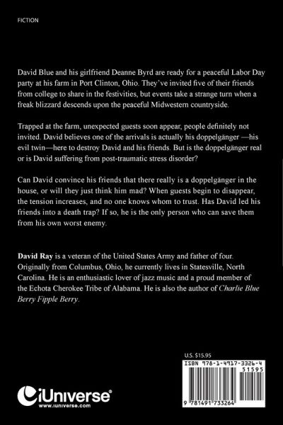 David Blue and his girlfriend Deanne Byrd are ready for a peaceful Labor Day party at his farm in Port Clinton, Ohio. They've invited five of their friends from college to share in the festivities, but events take a strange turn when a freak blizzard descends upon the peaceful Midwestern countryside. Trapped at the farm, unexpected guests soon appear, people definitely not invited. David believes one of the arrivals is actually his doppelgänger -his evil twin-here to destroy David and his friends. But is the doppelgänger real or is David suffering from post-traumatic stress disorder? Can David convince his friends that there really is a doppelgänger in the house, or will they just think him mad? When guests begin to disappear, the tension increases, and no one knows whom to trust. Has David led his friends into a death trap? If so, he is the only person who can save them from his own worst enemy.