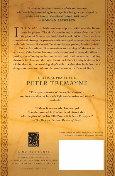 In A.D. 670, an Irish merchant ship is attacked by a pirate vessel off the southern coast of the Breton peninsula. Merchad, the ship's captain, and Bressal, a prince from the Irish kingdom of Muman, are killed in cold blood after they have surrendered. Among the other passengers who manage to escape the slaughter are Fidelma of Cashel and her faithful companion, Brother Eadulf. Once safely ashore, Fidelma-sister to the King of Muman and an advocate of the Brehon law courts-is determined to bring the killers to justice, not only because her training demands it but also because one of the victims was her cousin. The only clue to the killer's identity is the symbol of the dove on the attacking ship's sails, a clue that leads her on a dangerous quest to confront the man known as The Dove of Death.