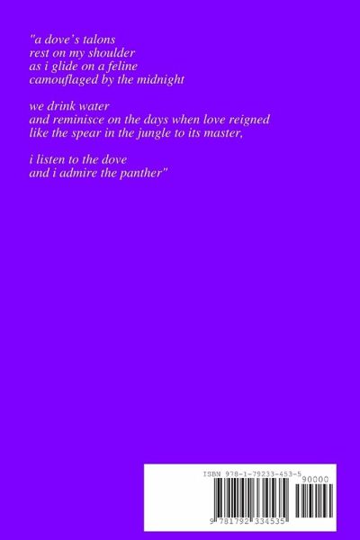 The Dove, the Panther, the Spear, is a collection of poetry about love, faith, and power. Each poem is separated into one of three sections, all three of which are tied to the reality of the author. Lance Haynes Jr. One being the tendencies of mere mortals, given the two divine powers amongst them. The acknowledgement of God and his presence being the second, and finally, the survival and magnificence of Blacks in America.