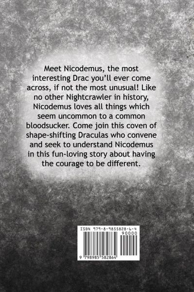 Meet Nicodemus, the most interesting Drac you'll ever come across, if not the most unusual! Like no other Nightcrawler in history, Nicodemus loves all things which seem uncommon to a common bloodsucker. Come join this coven of shape-shifting Draculas who convene and seek to understand Nicodemus in this fun-loving story about having the courage to be different.