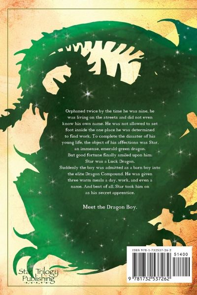 Orphaned twice by the time he was nine, he was living on the streets and did not even know his own name. He was not allowed to set foot inside the one place he was determined to find work. To complete the disaster of his young life, the object of his affections was Star, an immense, emerald-green dragon. But good fortune finally smiled upon him: Star was a Luck Dragon. Suddenly he was admitted as a barn boy into the elite Dragon Compound. He was given three warm meals a day, work, and even a name. And best of all, Star took him on as his secret apprentice. Meet the Dragon Boy