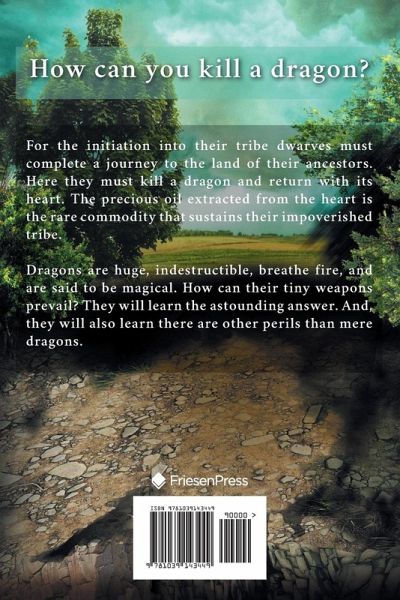 How can you kill a dragon? For the initiation into their tribe dwarves must complete a journey to the land of their ancestors. Here they must kill a dragon and return with its heart. The precious oil extracted from the heart is the rare commodity that sustains their impoverished tribe. Dragons are huge, indestructible, breathe fire, and are said to be magical. How can their tiny weapons prevail? They will learn the astounding answer. And, they will also learn there are other perils than mere dragons.