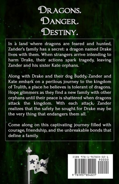 Dragons. Danger. Destiny. In a land where dragons are feared and hunted, Zander's family has a secret: a dragon named Drake. When strangers arrive intending to harm the dragon, their actions spark tragedy, leaving Zander and Kate orphans. Along with Drake and their dog Buddy, they embark on a perilous journey to the kingdom of Trulith, a place Zander believes is tolerant of dragons. Hope glimmers as they find a new family with other orphans, until their peace is shattered when dragons attack the kingdom. With each attack, Zander realizes that the safety he sought for Drake may be the very thing that endangers them all. Come along on this captivating journey filled with courage, friendship, and the unbreakable bonds that define a family.