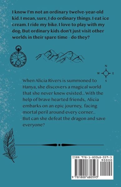 "I know I'm not an ordinary twelve-year-old kid. I mean, sure, I do ordinary things. I eat ice cream. I ride my bike. I love to play with my dog. But ordinary kids don't just visit other worlds in their spare time - do they?" When Alicia Rivers is summoned to Hanya, she discovers a magical world that she never knew existed... With the help of brave hearted friends, Alicia embarks on an epic journey, facing mortal peril around every corner... But can she defeat the dragon and save everyone?