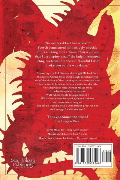 Answering a call of distress, the knight Michael finds the king of Gladur Nock surprisingly reluctant to be rid of the shadow of fear the dragon casts over his land. Then the knight meets Princess Aina, a warrior maiden who first imprisons men and then trains them to do battle against the dragon. With whom should he align himself? The king is ambitious and cruel. The princess is secretive. And if he goes and fights, what chance does he stand against a ruthless and remorseless dragon? Has all his training with a Luck Dragon prepared him well enough for this moment?