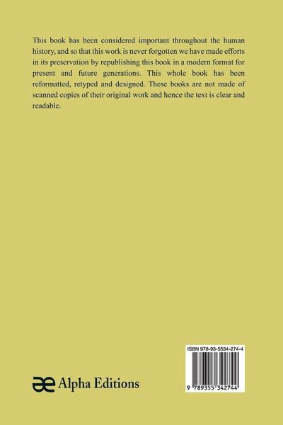 This book has been considered important throughout the human history, and so that this work is never forgotten we have made efforts in its preservation by republishing this book in a modern format for present and future generations. This whole book has been reformatted, retyped and designed. These books are not made of scanned copies and hence the text is clear and readable.