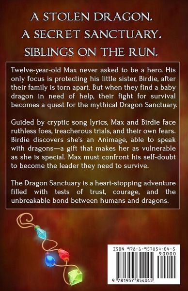 A stolen dragon. A secret sanctuary. Siblings on the run. Twelve-year-old Max never asked to be a hero. His only focus is protecting his little sister, Birdie, after their family is torn apart. But when they find a baby dragon in need of help, their fight for survival becomes a quest to find the mythical Dragon Sanctuary. Guided by cryptic song lyrics, Max and Birdie face ruthless foes, treacherous trials, and their own fears. Birdie discovers she's an Animage, able to speak with dragons-a gift that makes her as vulnerable as she is special. Max must confront his self-doubt to become the leader they need to survive. The Dragon Sanctuary is a heart-stopping adventure filled with tests of trust, courage, and the unbreakable bond between humans and dragons-perfect for fans of Eragon and How to Train Your Dragon.