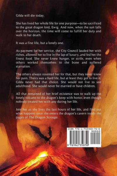 Gilda will die today. She has lived her whole life for one purpose-to be sacrificed to the great dragon lord, Ewig. And now, when the sun falls over the horizon, the time will come to fulfill her duty and walk to her death. It was a fine life, but a lonely one. As payment for her service, the City Council lauded her with riches, allowed her to live in the lap of luxury, and fed her the finest food. She never knew hunger, or strife, even when others worked themselves to the bone and suffered starvation. The others always resented her for that, but they never knew her pain. Theirs was a hard life, but at least they got to live it. Gilda never had that choice. She would not live to see adulthood. She would never be married or have children. All that remained of her brief existence was to walk up the lonely volcano to the dragon's keep with honor, even though nobody treated her with any during her life. Join her as the lives she last hours of her life, and find out what happens once she enters the dragon's cavern inside the pages of The Dragon Scrouge.