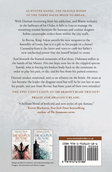 As winter wanes, the fragile bonds of the Three Races begin to break. With Darnuir recovering from his addiction, and Blaine reclusive in the hallways of his Order, it falls to Lira to manage the mounting tension between the humans and zealous dragons before catastrophe strikes from within the city walls. In Brevia, King Arkus unveils his new weapons to the Assembly of Lords, but is it a gift to his people or a threat? Cassandra fears it the latter and vows to curb her father's new unchecked power that she herself helped to create. And beneath the burned mountain of Kar'drun, Dukoona suffers at the hands of his Master. His one hope now lies in the crippled spectre Sonrid, who is forcing his broken body back to the mountain in order to play his part, or die, and be free from his pained existence. Darnuir awakes weakened, and to an alliance on the brink. He must at last become the leader the dragons need but will he be too late to save his people, not just from Rectar, but from years of their own mistakes?