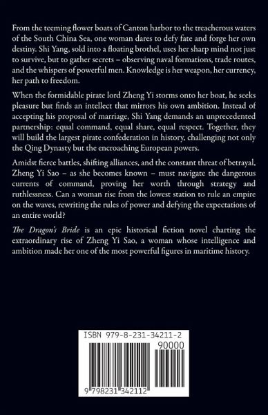 From the teeming flower boats of Canton harbor to the treacherous waters of the South China Sea, one woman dares to defy fate and forge her own destiny. Shi Yang, sold into a floating brothel, uses her sharp mind not just to survive, but to gather secrets - observing naval formations, trade routes, and the whispers of powerful men. Knowledge is her weapon, her currency, her path to freedom. When the formidable pirate lord Zheng Yi storms onto her boat, he seeks pleasure but finds an intellect that mirrors his own ambition. Instead of accepting his proposal of marriage, Shi Yang demands an unprecedented partnership: equal command, equal share, equal respect. Together, they will build the largest pirate confederation in history, challenging not only the Qing Dynasty but the encroaching European powers. Amidst fierce battles, shifting alliances, and the constant threat of betrayal, Zheng Yi Sao - as she becomes known - must navigate the dangerous currents of command, proving her worth through strategy and ruthlessness. Can a woman rise from the lowest station to rule an empire on the waves, rewriting the rules of power and defying the expectations of an entire world? The Dragon's Bride is an epic historical fiction novel charting the extraordinary rise of Zheng Yi Sao, a woman whose intelligence and ambition made her one of the most powerful figures in maritime history.