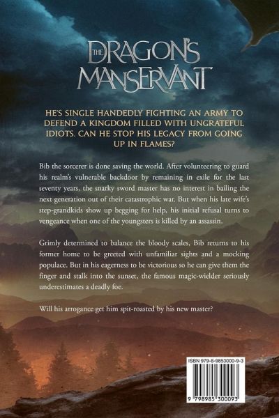 He's singlehandedly fighting an army to defend a kingdom filled with ungrateful idiots. Can he stop his legacy from going up in flames? Bib the sorcerer is done saving the world. After volunteering to guard his realm's vulnerable backdoor by remaining in exile for the last seventy years, the snarky sword master has no interest in bailing the next generation out of their catastrophic war. But when his late wife's step-grandkids show up begging for help, his initial refusal turns to vengeance when one of the youngsters is killed by an assassin. Grimly determined to balance the bloody scales, Bib returns to his former home to be greeted with unfamiliar sights and a mocking populace. But in his eagerness to be victorious so he can give them the finger and stalk into the sunset, the famous magic-wielder seriously underestimates a deadly foe. Will his arrogance get him spit-roasted by his new master? The Dragon's Manservant is the sarcasm-stuffed first book in the Sorcerer of Bad Examples humorous fantasy series. If you like heroes who can't catch a break, novel twists, and fast-paced action, then you'll love Bill McCurry's laugh-out-loud adventure.